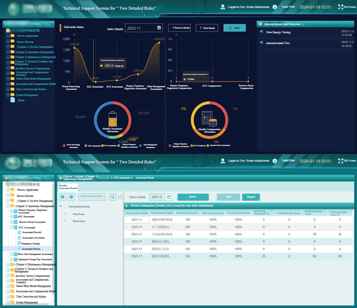 The provincial-level "Two Rules" technical support system strictly follows the calculation models established in the latest "grid-connected operation assessment implementation rules" and "ancillary service compensation implementation rules" issued by the energy regulatory authority, forming an intelligent platform integrating assessment and compensation calculation, settlement, and process management.